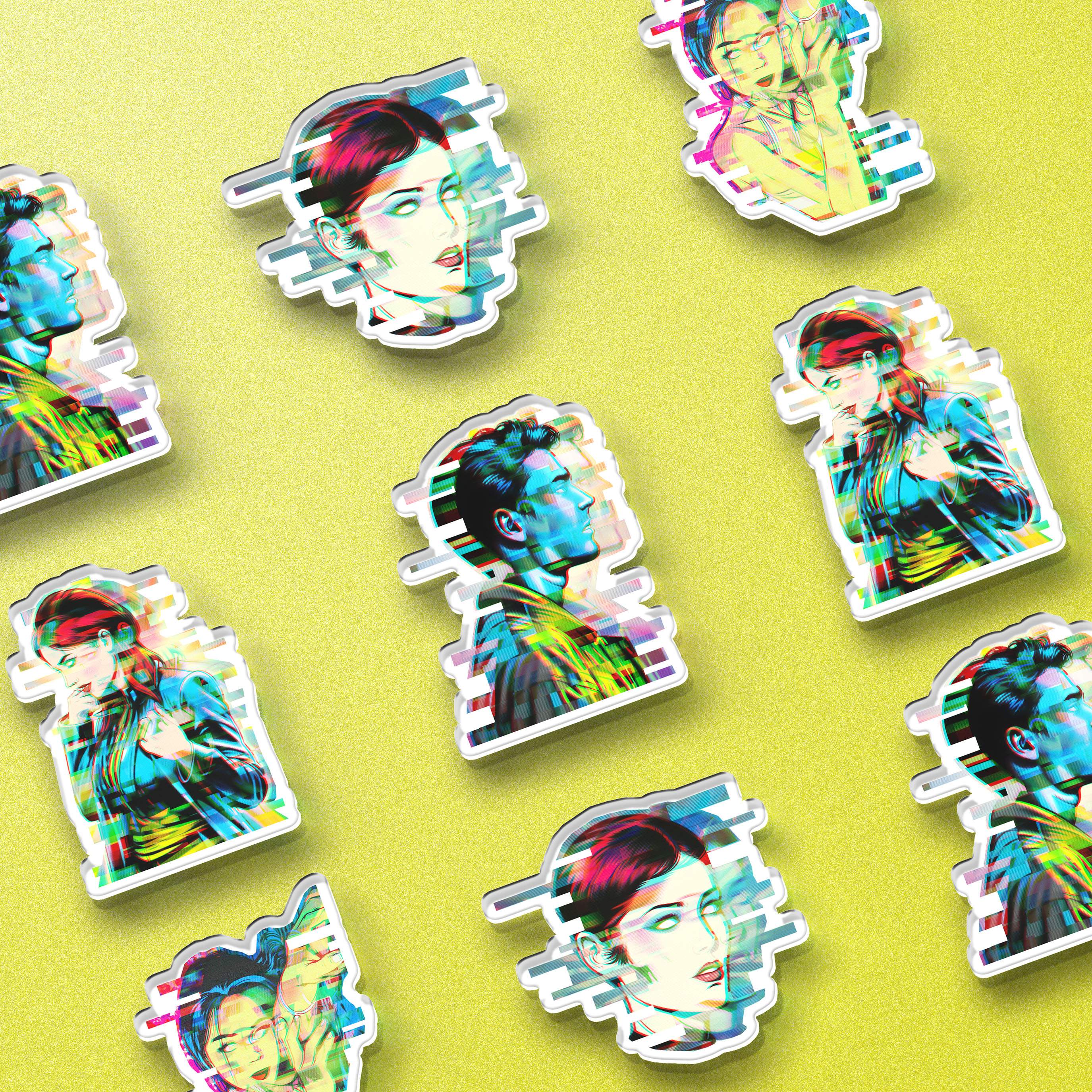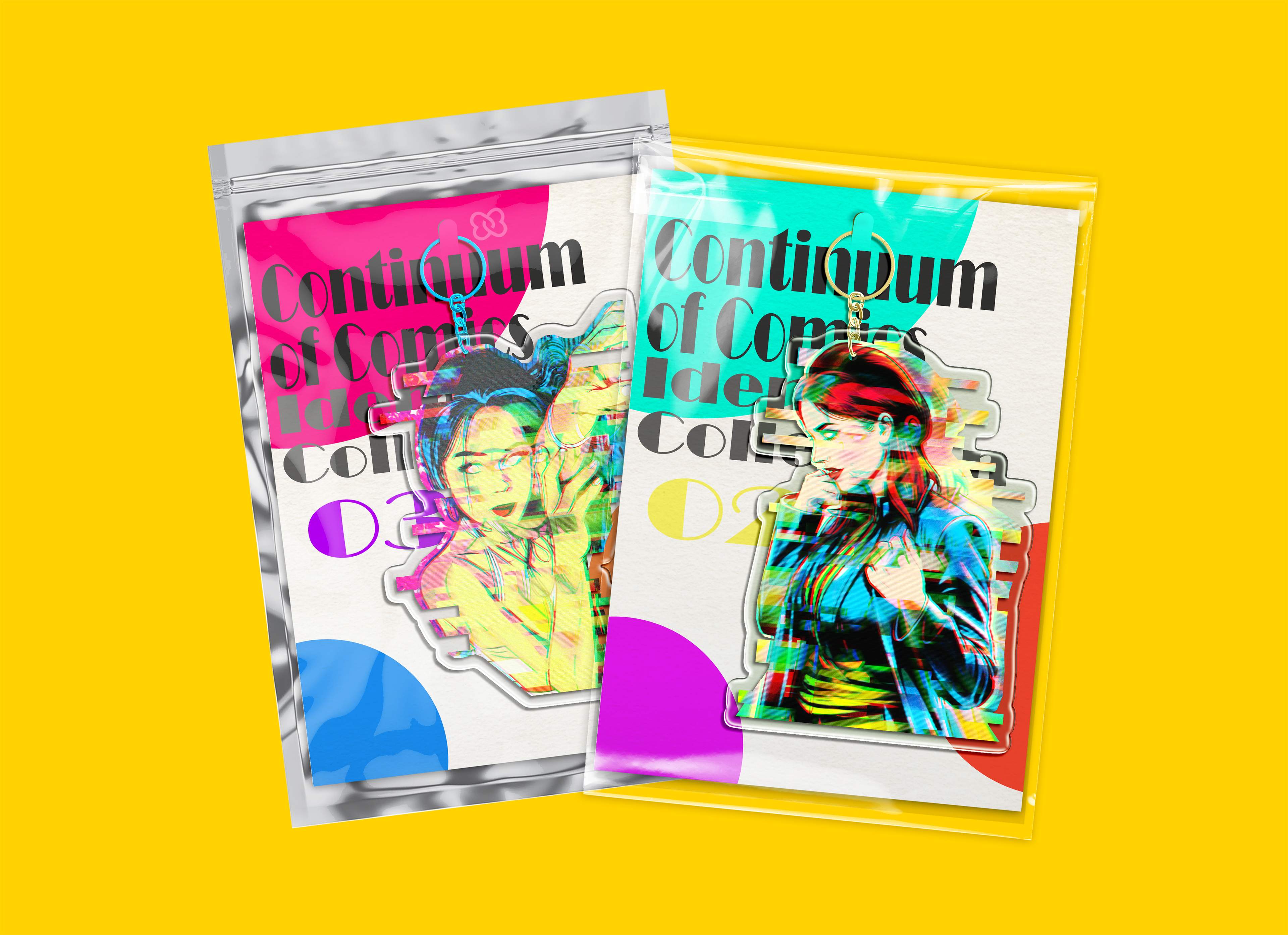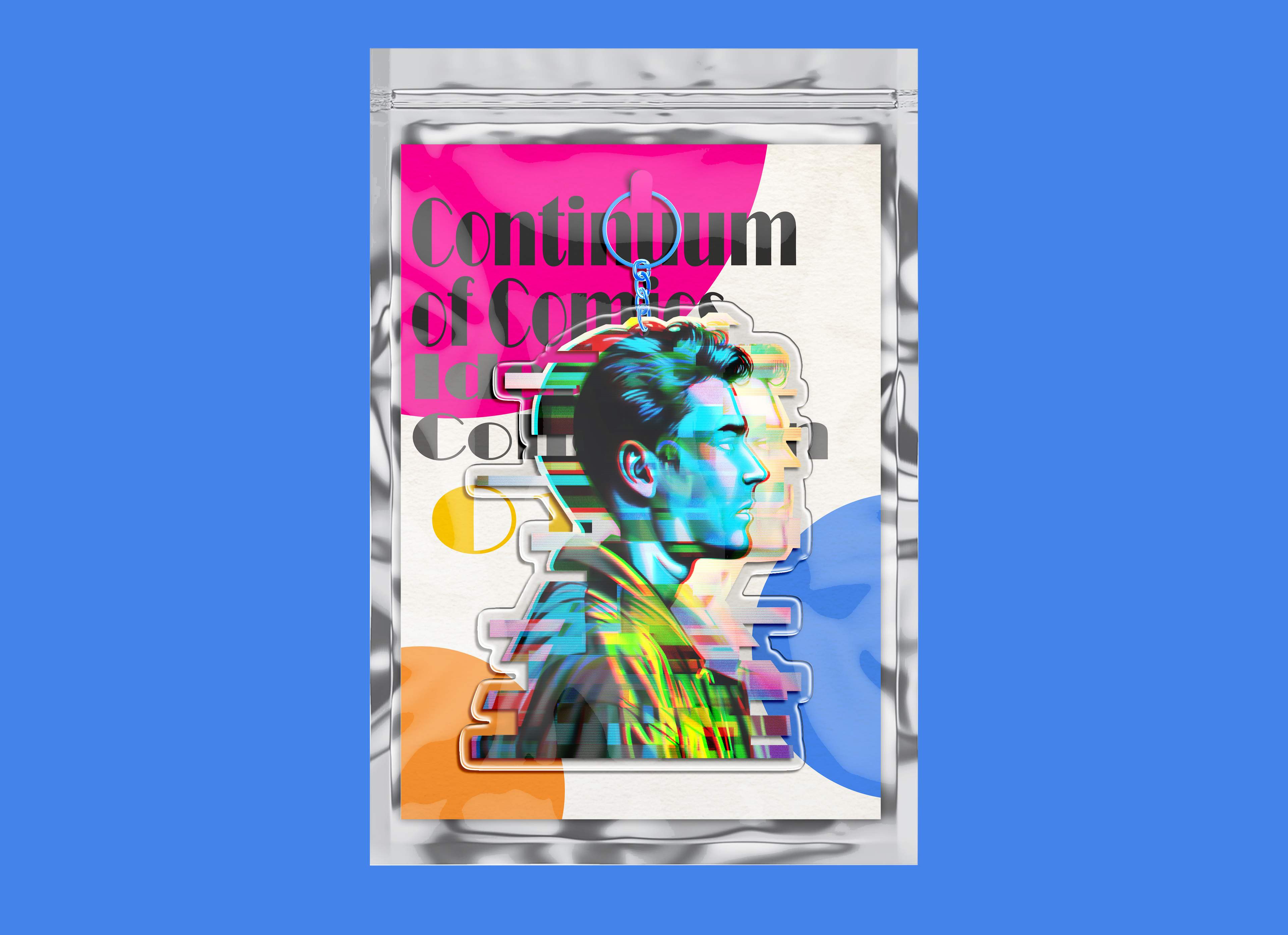 This work transforms glitch-based portraits from the Continuum of Comics series into tangible artifacts. The illustrated figures, fractured and recomposed through digital manipulation, are materialized as acrylic keychains that shift from image to object. By moving between screen and handheld form, the piece reflects on how identity circulates through preservation, exchange, and commodification, suggesting that even distortion can be carried as a token of selfhood.