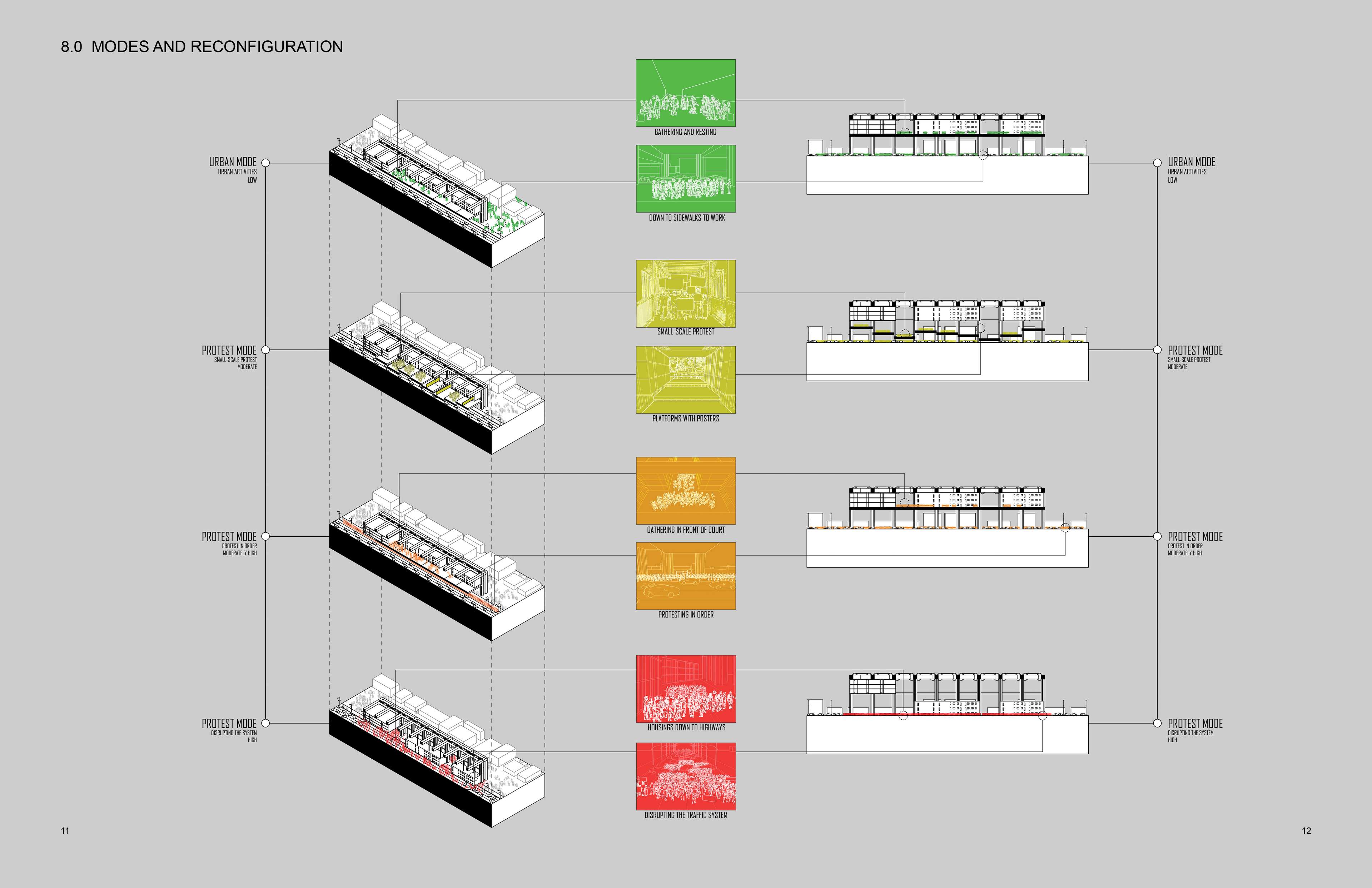 This infrastructure is a new type of architecture. Just as traffic lights manage the flow of traffic, it manages the flow of protests. It sets up a complete mechanism that step by step change an urban infrastructure that many people enjoy resting to a place that people can express their rights, from small gathering, to large-scale protest occupying the whole infrastructure, and to disruption of traffic system. And within this flow-management process, it also embodies the mutual relationships among rights, housing, and social activism and bonds them tighter.
