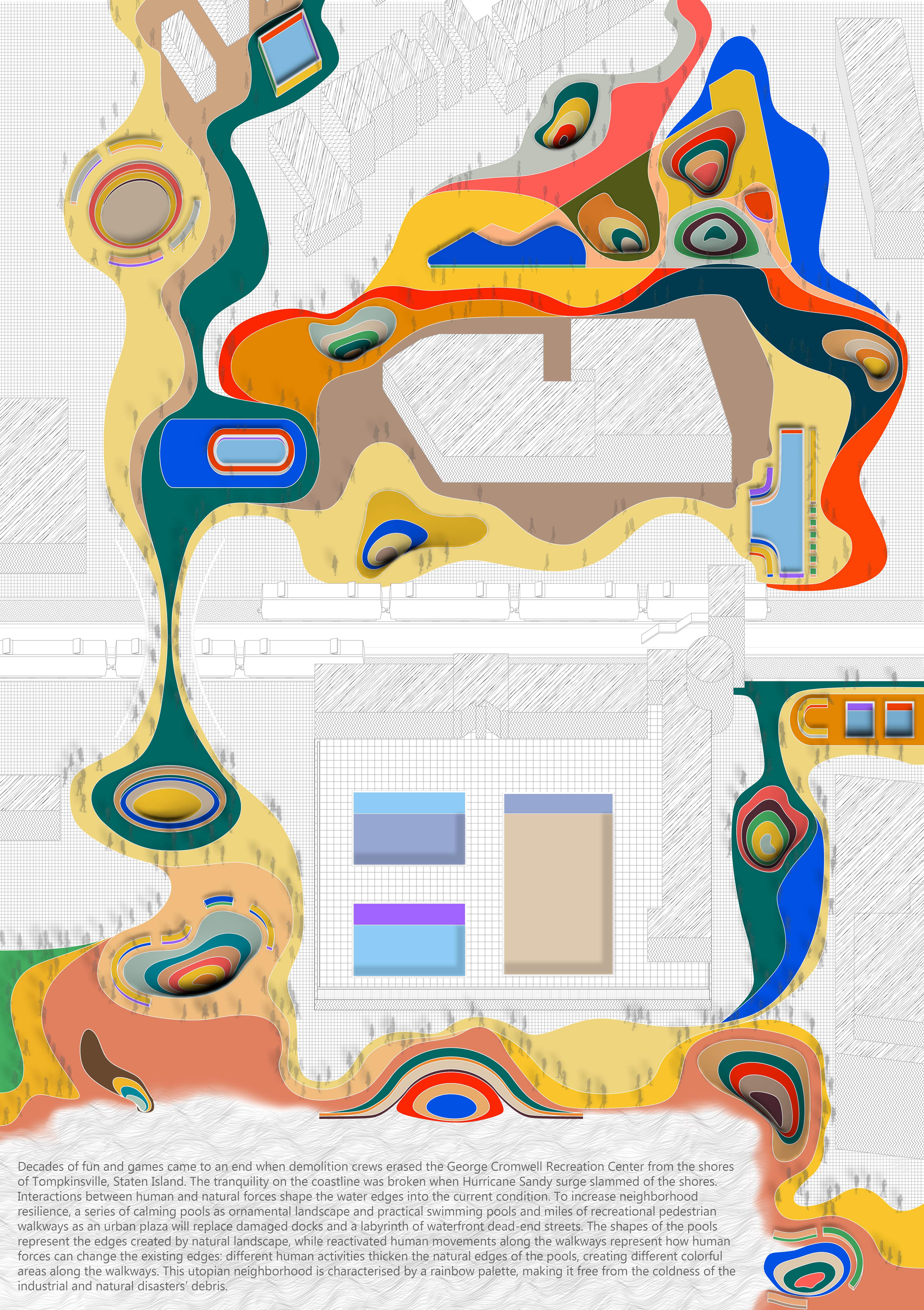 This architectural project, centered around the revitalization of the George Cromwell Center in Tompkinsville, focuses on transforming an old recreation center into a dynamic, multifunctional space.