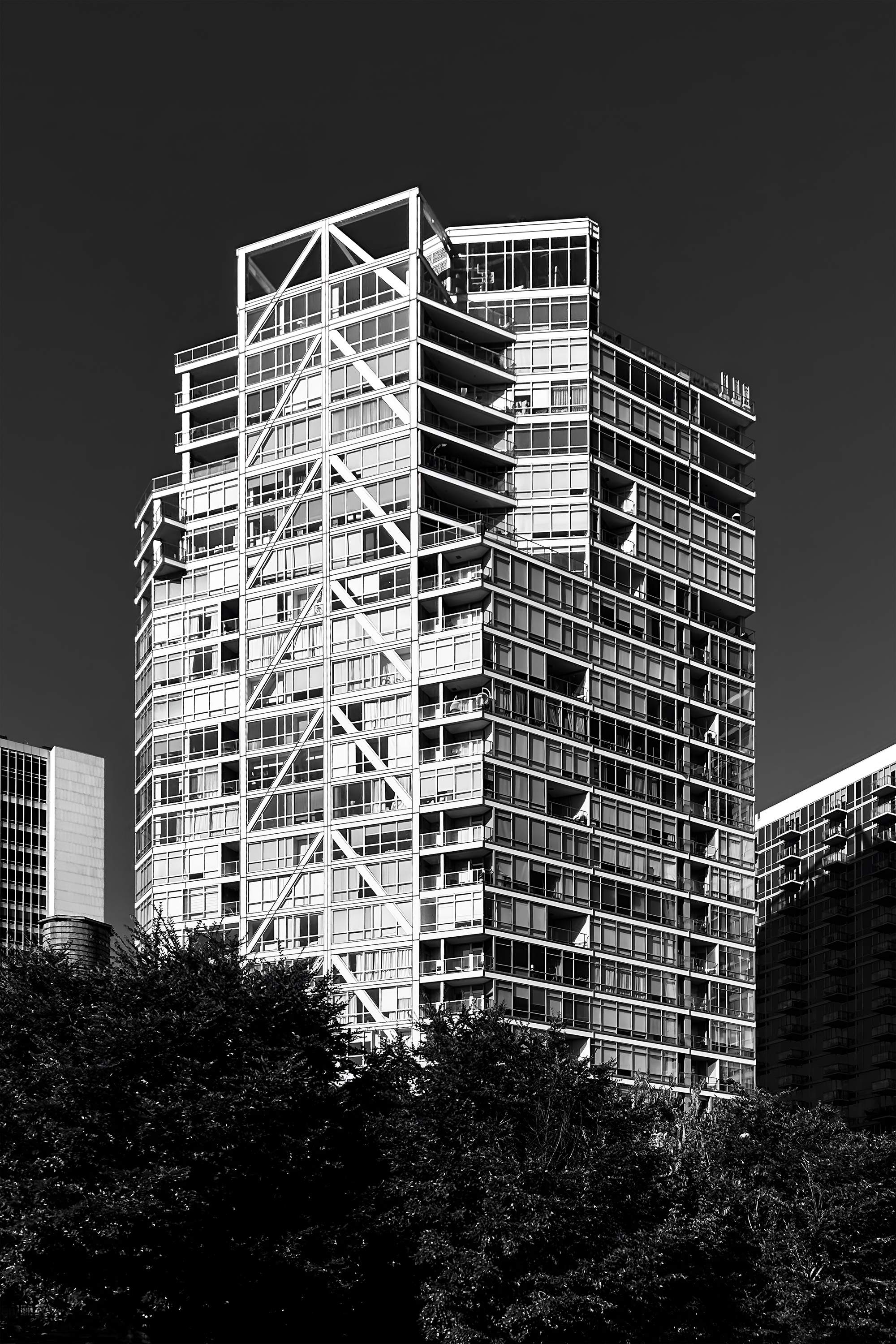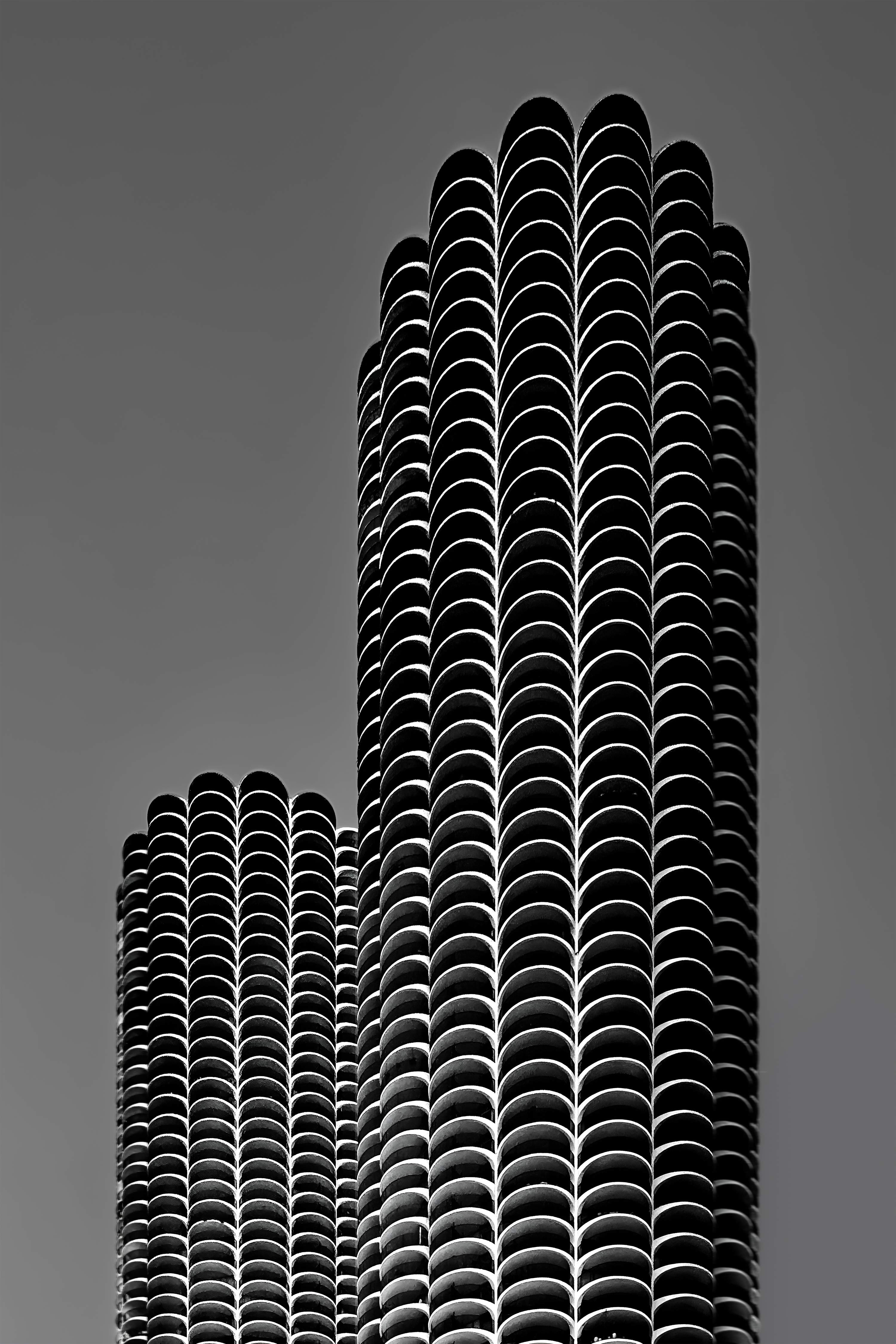 Vertical Chicago is a photographic study of the city’s iconic skyline, capturing the sculptural presence of its high-rise architecture in stark black and white. Each image isolates a building against the sky, emphasizing verticality, rhythm, and structural detail. The absence of color distills form to pure light and shadow, allowing texture and geometry to dominate. Together, the series reflects Chicago’s legacy as a birthplace of the skyscraper and explores how vertical lines shape both the city’s identity and its enduring architectural imagination.